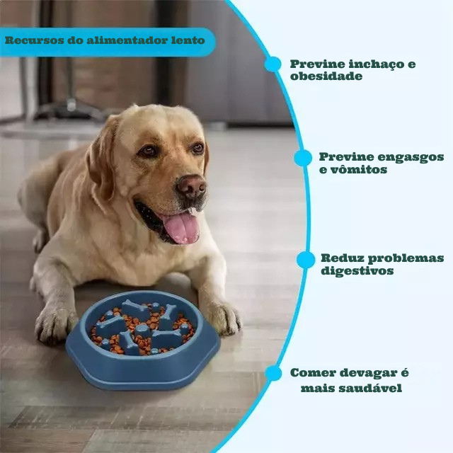 Com a tigela alimentadora lenta, você garante que seu cão tenha uma alimentação mais saudável e interativa. Projetada para prolongar o tempo de refeição, ela ajuda a prevenir engasgos, obesidade e indigestão.